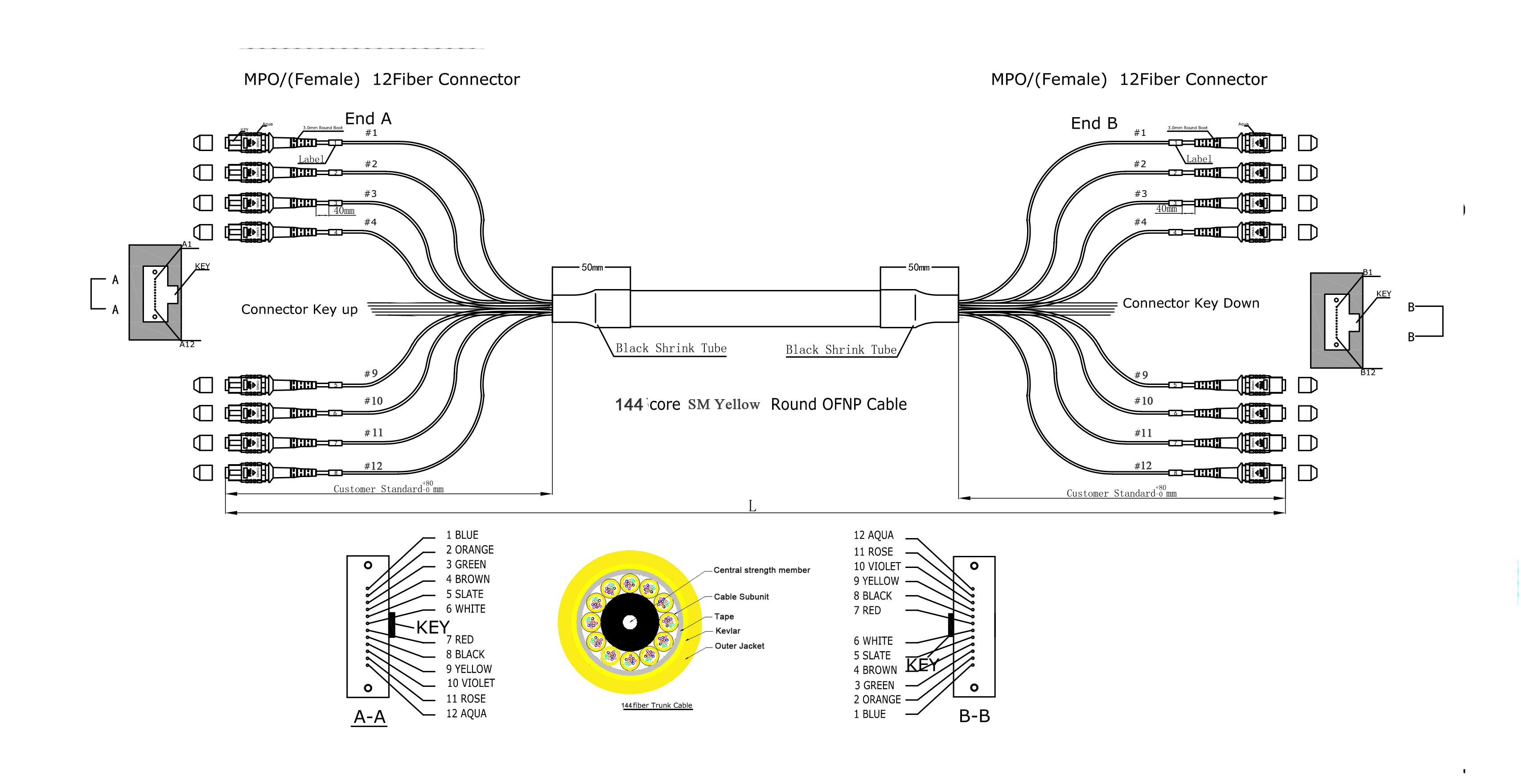 Connector Fiber Count | 8, 12, 24,72,144 core | |